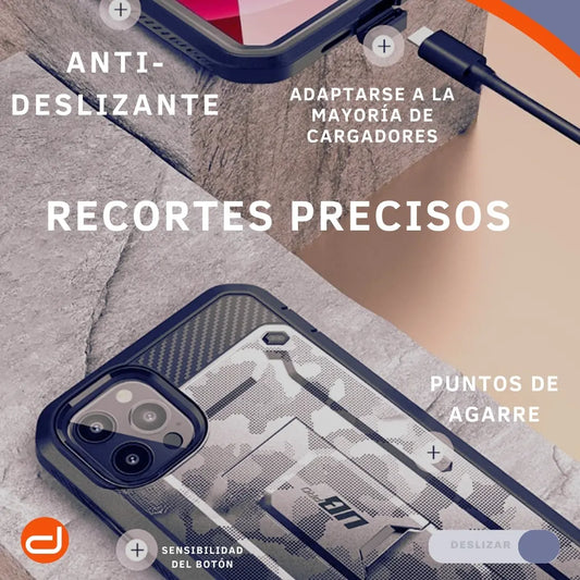 Case Supcase Para iPhone 13 Pro Max Protector 360° Funda Camo Gris